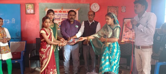 गाडरवारा। गत दिवस समीपी ग्राम सांगई की एकीकृत शासकीय नवीन माध्यमिक शाला में विदाई कार्यक्रम का आयोजन कर 8 वी के छात्र छात्राओं को विदाई दी गई। कार्यक्रम का शुभारंभ विद्या की देवी माँ सरस्वती के चित्र का पूजन एवं उनकी वंदना का गायन कर किया गया। कार्यक्रम में 8 वी के सभी छात्र छात्राओं को शाला की तरफ से दफ़्ति एवं पैन विदाई के तौर पर दिये गए। 8 वी के छात्र छात्राओं ने विद्यालय को दीवाल घड़ी भेंट की। इसके अलावा 8 वी के छात्र छात्राओं को 6 व 7 वी के छात्र छात्राओं ने उनकी खूबियों के आधार पर टाइटल भी दिए। कार्यक्रम में संस्था के शिक्षको सहित भूतपूर्व छात्र छात्राओं नेतराम केवट, फूलवती केवट सहित अन्य का स्वागत छात्र छात्राओं ने तिलक लगाकर किया। कार्यक्रम में प्रधानपाठक दशरथ प्रसाद जाटव ने अपने उदबोधन में सभी को वार्षिक परीक्षा के लिए अग्रिम शुभकामनायें दी एवं कहा कि प्रतिदिन सभी बच्चे नियमित तौर पर स्कूल आएं। कार्यक्रम का संचालन करते हुए माध्यमिक शिक्षक मधुसूदन पटैल ने कहा कि जीवन मे आत्मनिर्भर बनने के लिए अच्छे अंकों से समस्त परीक्षाएं उत्तीर्ण करना जरूरी है। सभी छात्र छात्राएँ मन लगाकर पढ़ाई करें एवं आत्मविश्वास से परिपूर्ण होकर परीक्षा में शामिल हों। कार्यक्रम को शिखा कहार, फूलवती केवट, नेतराम केवट ने भी संबोधित करते हुए प्रेरणादायी विचार रखे। विदाई कार्यक्रम में उपस्थित छात्र छात्राएँ की आँखें विदाई गीत सुनकर नम हो गई।