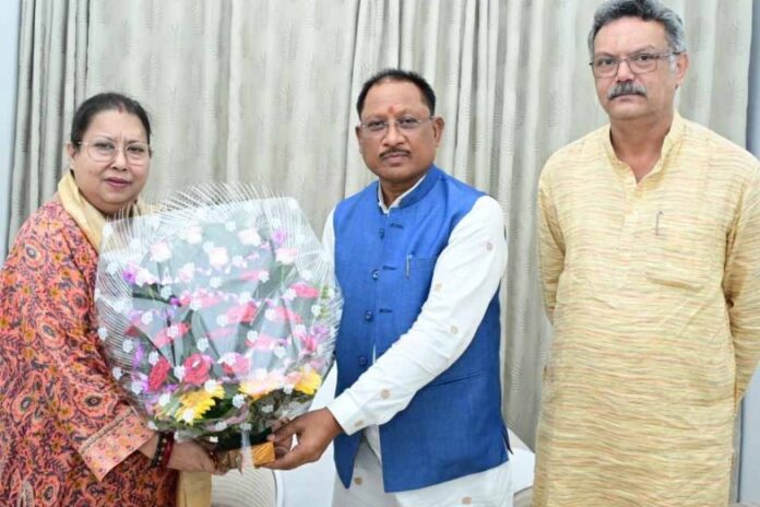 मुख्यमंत्री श्री विष्णु देव साय से आज उनके निवास कार्यालय में त्रिपुरा राज्य के त्रिपुरा-पूर्व लोकसभा क्षेत्र की सांसद एवं कवर्धा राजपरिवार की रानी श्रीमती कृति देवी ने सौजन्य मुलाकात की। इस दौरान उनके पति कवर्धा राजपरिवार के राजा एवं पूर्व विधायक श्री योगेश्वरराज सिंह भी मौजूद थे।