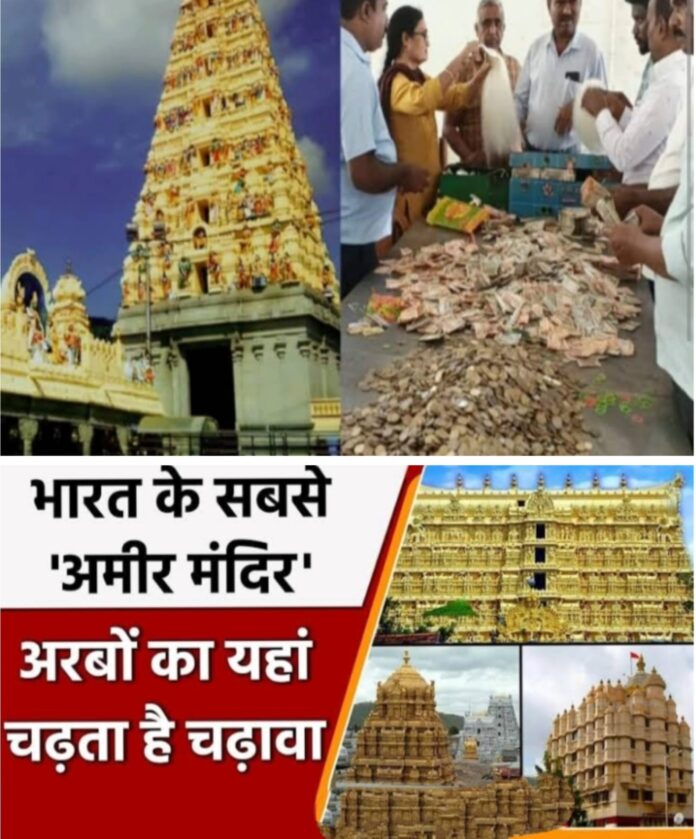 साथियों बात अगर हम ईआध्यात्मिक देश भारत की करें तो, दुनियाभर में भारत अपनी संस्कृति और परंपराओं के लिए मशहूर है। यहां मौजूद मंदिर अपनी भव्यता औरवास्तुशिल्प के लिए काफी प्रसिद्ध है। इन मंदिरों की लोकप्रियता की वजह से ही हर साल यहां भक्त करोड़ो का दान करते हैं।सोने की चिड़िया कहा जाने वाला भारत दुनियाभर में अपनी परंपराओं और मान्यताओं के लिए काफी मशहूर है। प्राचीन काल से ही यह देश दुनियाभर में आकर्षण का केंद्र रहा है। अपनी संस्कृति और आस्था की वजह से दुनियाभर के लोग इसकी तरफ खिंचे चले आते हैं। आस्था का प्रतीक यह देश पुराने समय से अपने मंदिरों के लिए पहचाना जाता है। यहां कई सारे मंदिर मौजूद हैं, जो अपनी भव्यता और वास्तुकला के लिए जाने जाते हैं। यही वजह है कि हर साल यहां देश ही नहीं, बल्कि विदेश से भी कई सारे भक्त दर्शन के लिए आते हैं। इतना नहीं मंदिर में माथा टेकने वाले ये भक्त भगवान को लाखों-करोड़ों रुपये का चढ़ावा भी अर्पित करते हैं। भक्तों के इन्हीं चढ़ाने की वजह से देश में कई ऐसे मंदिर हैं, जो चढ़ावे के मामले एक दूसरे को टक्कर देते हैं।भारत में हिंदुओं की आस्था मंदिरों में विराजमान भगवान से इस कदर जुड़ी है कि वो उसके लिए कुछ भी करने को तैयार रहते हैं। तभी तो भक्त अपनी श्रद्धा और भक्ति के लिए मंदिरों में लाखों का दान करते हैं, और दान के बलबूते भारत के सैकडों मंदिर अमीर मंदिरों की लिस्ट में शामिल हैं।