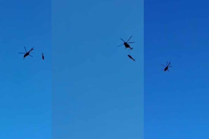 आसमान से ड्रॉप किए गए चॉपर में कोई यात्री या सामान नहीं था। सूचना मिलते ही रेस्क्यू टीम मौके पर पहुंची। टीम स्थिति का मुआयना कर रही है। हालांकि, मौके पर पहुंचकर एसडीआरएफ जवानों ने रेस्क्यू ऑपरेशन भी चलाया।