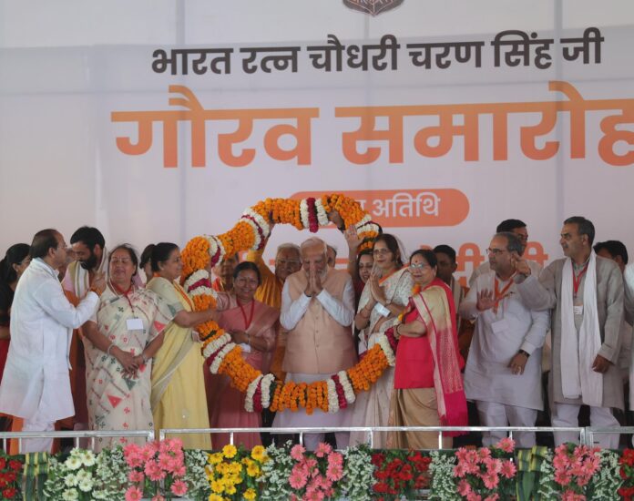 सीएम योगी ने कहा कि किसानों के मसीहा पूर्व प्रधानमंत्री चौधरी चरण सिंह को ‘भारत रत्न’ मिलना किसानों का सम्मान है। यूपी व देश का किसान इसके लिए पीएम के प्रति कृतज्ञता ज्ञापित करता है। सीएम ने आह्वान किया कि पीएम मोदी के नेतृत्व में उत्तर प्रदेश में 2014, 2017, 2019 और 2022 में आपने एनडीए गठबंधन को आशीर्वाद दिया है। एक बार फिर आपका आशीर्वाद 2024 में हमें प्राप्त हो।