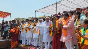 भारतीय जनता पार्टी लोकसभा प्रत्याशी चौधरी दर्शन सिंह का नामांकन फार्म जमा करवाने प्रदेश के मुख्यमंत्री डॉ मोहन यादव एवं पूर्व मुख्यमंत्री शिवराज सिंह चौहान सहित पार्टी के वरिष्ठ पदाधिकारी नर्मदापुरम पहुंचे। पूर्व मुख्यमंत्री शिवराज सिंह चौहान प्रत्याशी के साथ नर्मदा मैया का पूजन कर संकल्प सभा में शामिल हुए। सभा में उपस्थित कार्यकर्ताओं एवं जनता जनार्दन को संवोधित करते हुए। पूर्व मुख्यमंत्री शिवराज सिंह चौहान ने कहा, ‘एक ही संकल्प है कि बहनों की आंखों में आंसू नहीं रहेंगे। उनके चेहरे पर मुस्कुराहट होगी। आर्थिक सशक्तिकरण, सामाजिक सशक्तिकरण, शैक्षिक और राजनीतिक सशक्तिकरण करना है।’ चौधरी की नामांकन रैली और सभा में मुख्यमंत्री डॉ. मोहन यादव ने संबोधित किया। उन्होंने कहा कि अब एक ही संकल्प अब की बार 400 पार जिसके लिए हमें प्राण पण से जुटना है। इस अवसर पर उपस्थित लोगों से संवाद करते हुए भाजपा प्रत्याशी चौधरी दर्शन सिंह ने कहा कि मैं तो एक साधारण कार्यकर्ता हूं मैं शीर्ष नेतृत्व के प्रति कृताज्ञापित करता हूं जिन्होंने मुझ जैसे सामान्य से कार्यकर्ता को लोकसभा प्रत्याशी के रूप में खड़ा किया है। इस अवसर पर स्वागत भाषण सीता शरण शर्मा एवं आभार जिला अध्यक्ष माधव दास अग्रवाल ने किया। संकल्प सभा में 900 लोगों ने भारतीय जनता पार्टी की सदस्यता ग्रहण की जिसमें कांग्रेस के जनप्रतिनिधियों सहित किसानों के लिए लंबे समय से संघर्ष कर रहे एकम सिंह पटेल के साथ 700 लोगों ने भाजपा की सदस्यता ग्रहण की।