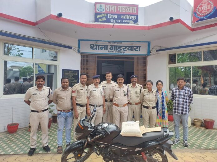 पुलिस अधीक्षक नरसिंहपुर के द्वारा जिले में मादक पदार्थों के अवैध कारोबार में लिप्त अपराधियों की धरपकड़ के लिये ऑपरेशन प्रहार चलाया जा रहा है । इसी तारतम्य में थाना गाडरवारा पुलिस ने दिनांक 09/04/2024 को थाना गाडरवारा की पुलिस टीम विवेचना हेतु साईखेड़ा तरफ जाते समय दशरथ सोनी के वेयर हाउस के पास साईखेड़ा रोड पिठहरा में दो संदिग्ध व्यक्ति मोटरसाईकल पर थैला छिपाते दिखाई दिये,जो पुलिस को देखकर भागने का प्रयास करने लगे । संदेह के आधार पर घेराबंदी कर पुलिस टीम द्वारा आरोपीगण हल्के पिता परमलाल कुशवाहा उम्र 41 वर्ष निवासी ग्राम कामती थाना गाडरवारा एवं राजसिंह उर्फ तराजू पिता मनमोद गुर्जर उम्र 32 वर्ष निवासी अन्हाई थाना बनखेड़ी जिला नर्मदापुरम का होना बताया ।