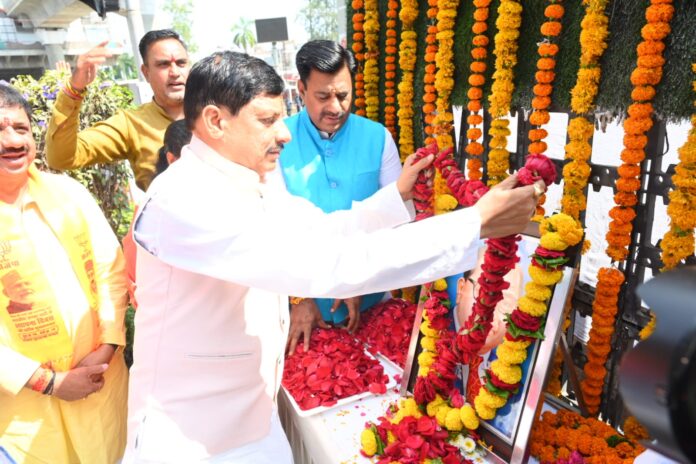 मुख्यमंत्री डॉ. मोहन यादव, भाजपा प्रदेश अध्यक्ष व सांसद विष्णु दत्त शर्मा, प्रदेश महामंत्री व विधायक भगवानदास सबनानी, प्रदेश मीडिया प्रभारी अशीष अग्रवाल सहित पार्टी पदाधिकारियों ने प्रदेश कार्यालय में संविधान निर्माता बाबा साहब डॉ. भीमराव अंबेडकर की जयंती पर उनके चित्र पर पुष्पांजलि अर्पित की।