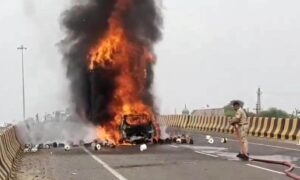 राजस्थान के सीकर में ट्रक और कर की भिड़ंत में दोनों बहनों में आग लग गई इस वजह से 7 लोगों की दर्दनाक मौत हो गई ….. आकाश तिवारी की रिपोर्ट…….