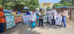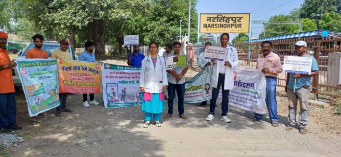 दिनांक 30 मई 2024 को. विश्व पर्यावरण दिवस के अवसर पर रेलवे चिकित्सालय नरसिंहपुर एवं रेलवे कॉलोनी नरसिंहपुर. पर. सभी कर्मचारी अधिकारी एवं उनके परिजन मिलकर के जागरूकता रैली निकाली गई. जिसमें रेलवे चिकित्सक डॉक्टर आर आर कुर्रे ने. जीवन दायिनी ऑक्सीजन पाने के लिए हर घर में पेड़ पौधे लगाने. फलदार वृक्ष लगाने. अपने हर जन्मदिवस पर. शादी के सालगिरह पर. हर त्यौहार पर. पूरे साल भर पेड़ पौधे लगाकर हर खुशी के वक्त पेड़ जरूर लगाए. पेड़ हमें जीवन दानी ऑक्सीजन के साथ-साथ फलदार वृक्ष हमें शारीरिक एवं मानसिक दोनों जीवन दानी है।