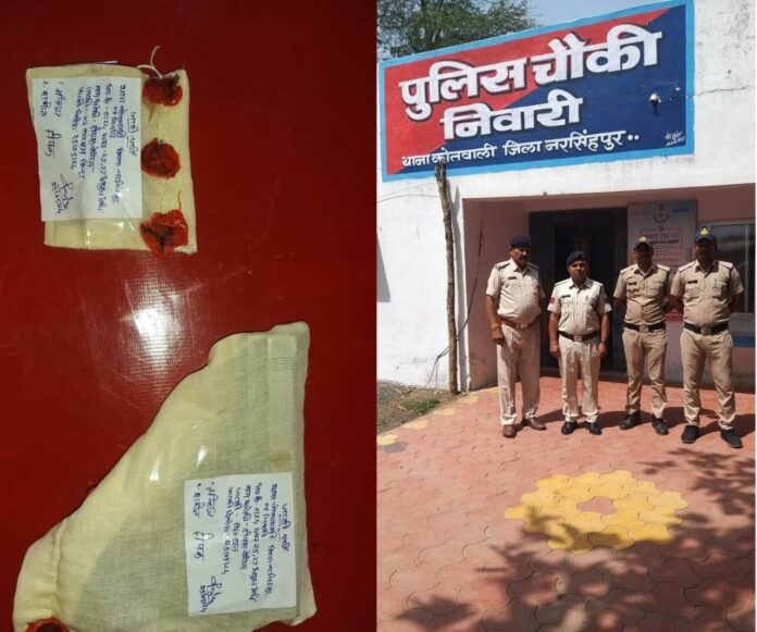 पुलिस द्वारा की गई कार्यवाही में इनकी रही मुख्य भूमिका :-* एसडीओपी नरसिंहपुर, मोनिका तिवारी के मार्गदर्शन में थाना प्रभारी निरीक्षक गौरव चाटे, उनि दिलीप सिसोदिया, प्रधान आरक्षक विवेक तिवारी, आरक्षक जितेन्द्र सिंह, आरक्षक पंकज सिंह राजपूत, आरक्षक मयूर, आरक्षक पंचेश्वर, आरक्षक शुभम यादव, आरक्षक नरेन्द्र राठौर की सराहनीय भूमिका रही।