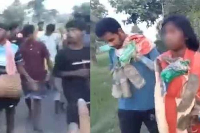 झारखंड के साहिबगंज जिले के मिर्जाचौकी थाना क्षेत्र में शर्मशार करने वाली एक घटना सामने आई है। यहां के बच्चा पंचायत के एक गांव में एक कथित प्रेमी युगल को पकड़ कर जूता-चप्पल का माला पहनाकर सरेआम सड़कों पर घुमाने का वीडियो वायरल हुआ है। यह मामला दो दिन पहले का है। इस मामले में संबंधित चौकीदार मजुबा मड़ैया की लिखित शिकायत पर मिर्जाचौकी थाना में 11 सितंबर की देर शाम को 15-20 अज्ञात लोगों के खिलाफ केस दर्ज कर पुलिस मामले की छानबीन में जुटी है।