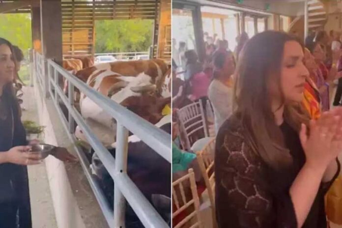 इस दिनों मां की पोस्ट के बाद से एक्ट्रेस परिणीति चोपड़ा सुर्खियों में बनी हुई हैं. हाल ही में एक वीडियो सामने आया है जिसमें एक्ट्रेस लंदन में कृष्ण भक्ति में डूबी हुई नजर आ रही हैं. इंटरनेशनल सोसाइटी फॉर कृष्णा कॉन्शसनेस (इस्कॉन) मंदिर से एक वीडियो वायरल हो रहा है. इसके अलावा वो यहां गौ सेवा करती भी नजर आईं हैं.