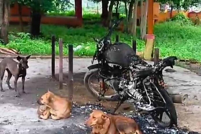अज्ञात लोगों ने लकड़ी और कंडों की चिता सजाकर बाइक को आग लगा दी. मामले का पता चलते ही लोगों की भीड़ जमा हो गई. अंतिम संस्कार वाली जगह जली हुई खड़ी बाइक का वीडियो भी सोशल मीडिया पर तेजी से वायरल हो रहा है.