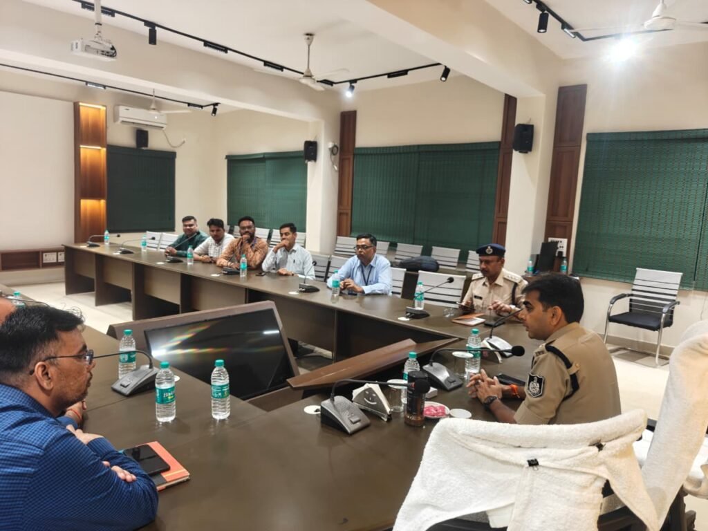 जिले में बैंकिंग संस्थानों की सुरक्षा व्यवस्था को सुदृढ़ बनाने एवं बैंक से संबंधित अपराधों की रोकथाम के उद्देश्य से पुलिस अधीक्षक, डॉ. ऋषिकेश मीना द्वारा जिले के समस्त बैंक अधिकारियों के साथ एक महत्वपूर्ण बैठक आयोजित की गई। बैठक के दौरान बैंक अधिकारियों के साथ-साथ अति. पुलिस अधीक्षक, संदीप भूरिया, एसडीओपी, नरसिंहपुर, मनोज गुप्ता, रक्षित निरीक्षक, श्रीमति मनोरमा बघेल एवं थाना प्रभारी उपस्थित रहे।