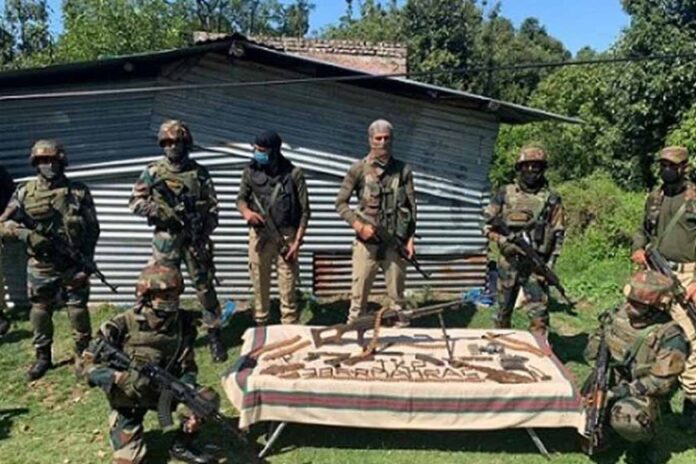सुरक्षा बलों ने गुरुवार को जम्मू-कश्मीर के राजौरी जिले के कालाकोट के एक सुदूर गांव में तलाशी अभियान के दौरान हथियार बरामद किए। तलाशी अभियान अभी जारी है। आधिकारिक सूत्रों ने बताया कि भारतीय सेना की राष्ट्रीय राइफल्स और जम्मू-कश्मीर पुलिस ने अपने विशेष अभियान समूह (एसओजी) के साथ मिलकर धर्मसाल पुलिस स्टेशन के अंतर्गत आने वाले गुलाबगढ़, बाजी माल गांवों के इलाकों में घेराबंदी और तलाशी अभियान चलाया। इस दौरान एक संदिग्ध आतंकी ठिकाने से कुछ हथियार बरामद किए गए हैं। एक अधिकारी ने कहा कि तलाशी अभियान अभी भी जारी है। अभियान समाप्त होने के बाद विस्तृत जानकारी साझा की जाएगी।