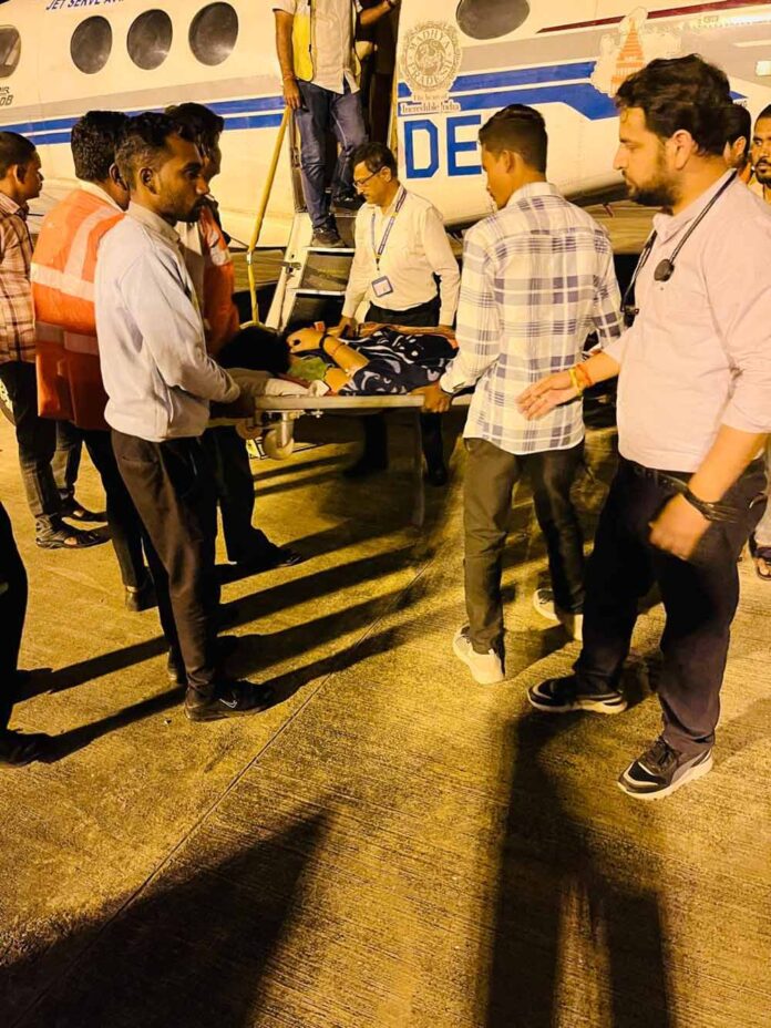 छतरपुर के ग्राम खेरो की निवासी गर्भवती महिला श्रीमती रानी पटेरिया (पत्नी श्री उमेश पटेरिया) को पीएमश्री एयर एम्बुलेंस सुविधा से आपात स्थिति में उन्नत स्वास्थ्य सेवाएं उपलब्ध कराकर जच्चा- बच्चा का जीवन सुरक्षित किया गया। उल्लेखनीय है कि श्रीमती रानी पटेरिया को रविवार 10 नवंबर को जिला अस्पताल छतरपुर में भर्ती किया गया। महिला की स्थिति “फुल टर्म प्रेगनेंसी विद प्रिवियस एल एस सी एस” के कारण हाई रिस्क श्रेणी में थी। डॉ. निधी खरे द्वारा सिजेरियन ऑपरेशन किया गया, लेकिन ऑपरेशन के पश्चात महिला को पोस्ट पार्टम ब्लीडिंग की समस्या उत्पन्न हो गई। स्त्री रोग विशेषज्ञ ने ब्लीडिंग रोकने के लिए आवश्यक उपचार किया तथा हिसटेक्टोमी की गई। महिला को 4 यूनिट ब्लड का ट्रांसफ्यूजन किया गया और उसे निरंतर ऑब्जर्वेशन में रखा गया।