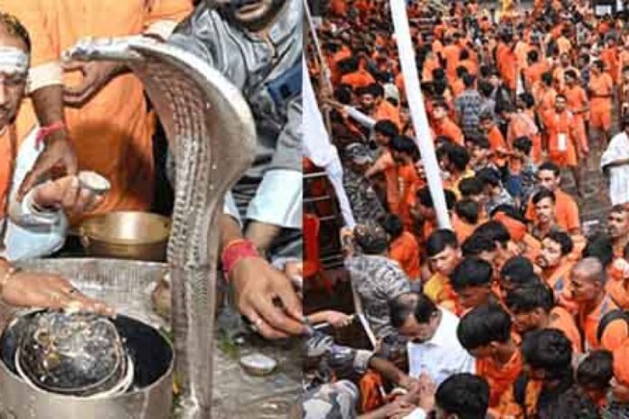 आज सोमवार को दो हेलीकॉप्टर से भोरमदेव मंदिर परिसर के आसपास कांवरियों पर पुष्प वर्षा की गई। सीएम विष्णु देव साय व डिप्टी सीएम विजय शर्मा दोनों कबीरधाम पहुंचे हैं। मुख्यमंत्री साय प्रदेश की खुशहाली और समृद्धि के लिए मंदिर में विशेष पूजा-अर्चना और अभिषेक किया। तय कार्यक्रम के मुताबिक, मुख्यमंत्री विष्णुदेव साय आज सोमवार सुबह 7.05 बजे हेलीकॉप्टर द्वारा पुलिस ग्राउंड रायपुर से प्रस्थान कर 7.35 बजे पीजी कॉलेज हेलीपेड कवर्धा पहुंचे।