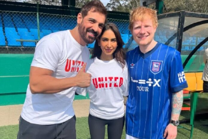 इसके कैप्शन में उन्होंने लिखा, जॉन अब्राहम अब आईपीएसविच टाउन फुटबॉल टीम के फैन बन गए हैं। एड शीरन अपने टूर की समाप्ति 15 फरवरी को दिल्ली में कॉन्सर्ट के साथ करेंगे।