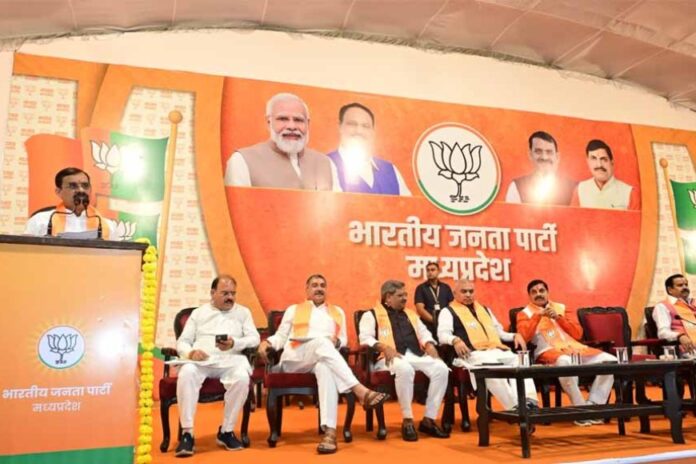 भाजपा की बैठक में सीएम डॉ. मोहन यादव समेत संगठन के पदाधिकारी मौजूद हैं।