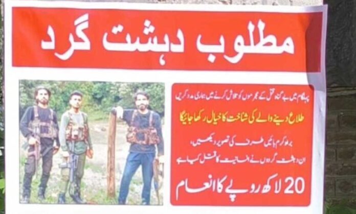 पिछले महीने जम्मू-कश्मीर के पहलगाम में हुए आतंकी हमले करने वाले गुनहगारों को अभी तक पकड़ा नहीं जा सका है. अब सुरक्षा एजेंसियों ने पहलगाम हत्याकांड के लिए जिम्मेदार तीन पाकिस्तानी आतंकवादियों के पोस्टर जारी किए हैं. शोपियां जिले के कई इलाकों में पोस्टर लगाए गए हैं. पहलगाम आतंकी हमले में शामिल लोगों की जानकारी देने वाले को 20 लाख का इनाम देने का ऐलान किया गया है. इसके साथ ही यह भी कहा गया है कि हमलावरों के बारे में जानकारी देने वालों की पहचान को गुप्त रखा जाएगा.