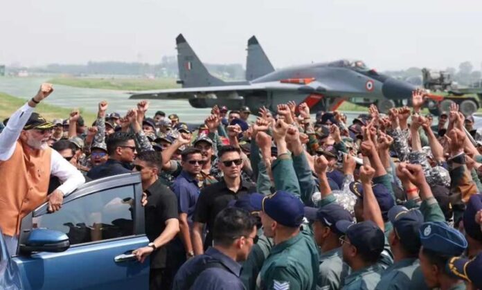 प्रधानमंत्री ने कहा कि मैं गर्व के साथ कह सकता हूं कि आप सभी अपने लक्ष्यों पर बिल्कुल खरे उतरे हैं। पाकिस्तान में आतंकी ठिकानों और उनके एयरबेस ही तबाह नहीं हुए बल्कि उनके नापाक इरादे और उनका दुस्साहस दोनों की हार हुई। आपको ऑपरेशन सिंदूर से बौखलाए दुश्मन ने इस एयरबेस के साथ साथ हमारे अनेक एयरबेस पर हमला करने की कई बार कोशिश की बार बार हमें टारगेट किया, लेकिन पाक के नापाक इरादे हर बार नाकाम हो गए।
