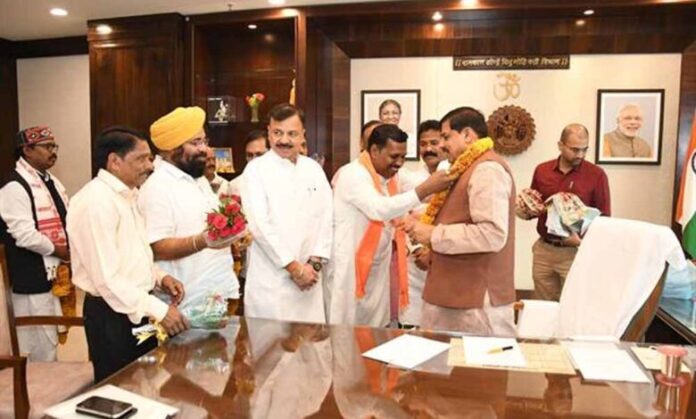 मुख्यमंत्री डॉ. मोहन यादव से विधायक पिपरिया श्री ठाकुरदास नागवंशी के नेतृत्व में पचमढ़ीवासियों ने मंत्रालय में भेंट की। उन्होंने पचमढ़ी नगर की नजूल भूमि को अभयारण्य की सीमा से पृथक करने के निर्णय के लिए मुख्यमंत्री डॉ. यादव का आभार माना। उन्होंने मुख्यमंत्री डॉ. यादव पुष्प-गुच्छ और पुष्पहार से अभिवादन किया। इस अवसर पर पूर्व साडा अध्यक्ष श्री कमल धूत और श्री नवनीत नागपाल सहित अन्य जनप्रतिनिधि साथ थे। उल्लेखनीय है कि मुख्यमंत्री डॉ. यादव की अध्यक्षता में 6 मई को हुई मंत्रि-परिषद की बैठक में इस आशय का निर्णय लिया गया था।