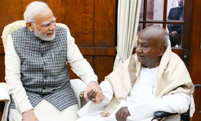 प्रधानमंत्री नरेन्द्र मोदी ने पूर्व प्रधानमंत्री और जनता दल (सेक्युलर) के अध्यक्ष एचडी देवेगौड़ा को रविवार को उनके जन्मदिन पर बधाई दी।