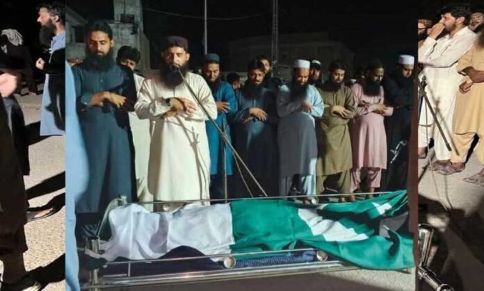 पाकिस्तान के सिंध प्रांत में लश्कर-ए-तैयबा (LeT) के एक टॉप आतंकी सैफुल्लाह खालिद की मौत हो गई है. रविवार को सैफुल्लाह, जिसे विनोद कुमार, मोहम्मद सलीम, खालिद, वानियाल, वाजिद और सलीम भाई के नाम से भी जाना जाता था, को सिंध के बदिन जिले के मटली तालुका में मार गिराया गया. लेकिन अब उसके जनाजे में ठीक वैसा ही नजारा दिखा है, जिसकी पाकिस्तान से उम्मीद थी. आतंकी सैफुल्लाह के शव को पाकिस्तानी झंडे से ढका गया. इससे पहले ऑपरेशन सिंदूर में जब भारत ने पाकिस्तान में आतंकियों को मारा था तब भी पाकिस्तान ने राजकीय सम्मान दिया था.