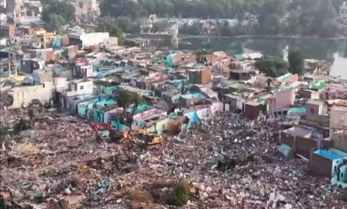 गुजरात के अहमदाबाद में चंडोला तालाब के किनारे एक साथ गरजे करीब 50 बुलडोजरों ने एक ही दिन में करीब 8500 मकानों/ढांचों को पत्थर-पत्थर कर डाला। अब कुछ धार्मिक ढांचे ही बचे हैं। पुलिस का कहना है कि इन्हें सम्मान के साथ हटाया जाएगा। अहमदाबाद नगर निगम ने अवैध अतिक्रमण को हटाकर 2.5 लाख वर्ग मीटर जमीन खाली कराई है।