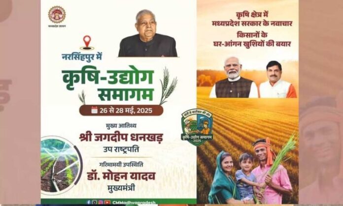 प्रदेश में वर्ष 2025 को उद्योग एवं रोजगार वर्ष के रूप में मनाया जा रहा है। इन्वेस्ट मध्यप्रदेश के अंतर्गत अनंत संभावनाओं के दृष्टिगत नरसिंहपुर में 26 मई को कृषि उद्योग समागम का आयोजन होगा। उपराष्ट्रपति जगदीप धनखड़, राज्यपाल मंगुभाई पटेल और मुख्यमंत्री डॉ. मोहन यादव 26 मई को कार्यक्रम का शुभारंभ करेंगे। तीन दिन के कृषि उद्योग समागम में कृषि अधारित उद्योग इकाइयों का शिलान्यास एवं लोकार्पण तथा उद्योगपतियों को भूमि आवंटन पत्र एवं आशय पत्रों का वितरण भी होगा। साथ कृषि उत्पादों की प्रदर्शनी भी लगाई जाएगी