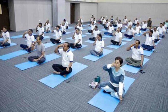 मध्यप्रदेश भवन में अंतर्राष्ट्रीय योग दिवस पर किया गया योगाभ्यास