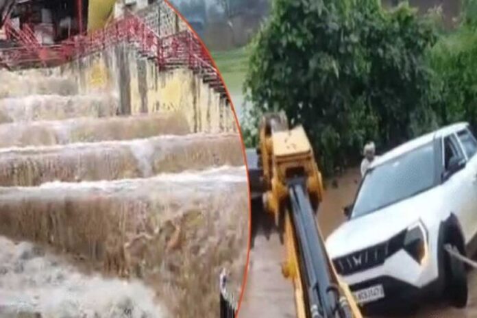 सतना में रपटे को पार करने की कोशिश में कार तेज बहाव में बह गई। लोगों ने कार सवार युवक को सुरक्षित बाहर निकाल लिया।