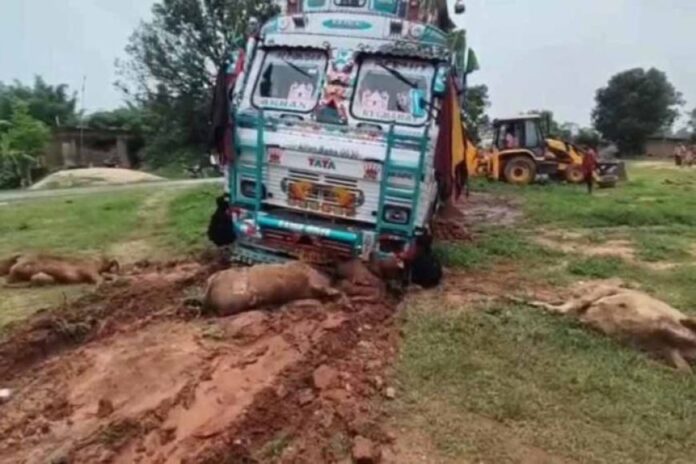 किसान सुरेश कुमार ने बताया कि सड़क किनारे 19 गाय बैठे थे. ट्रक चढ़ने से 6 गाय की मौके पर ही मौत गई. वहीं कई गाय घायल हुए हैं. घटना के बाद ट्रक चालक गाड़ी छोड़कर फरार हो गया. घटना की जानकारी मिलने के बाद प्रतापपुर पुलिस मौके पर पहुंची और दुर्घटनाग्रस्त ट्रक को जब्त कर पुलिस आरोपी चालक की तलाश में जुटी है.
