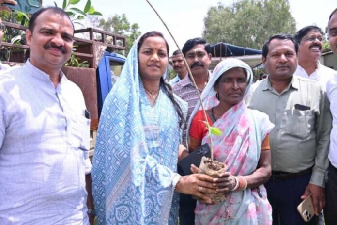 मंत्री श्रीमती राजवाड़े ने आम का पौधा लगाया