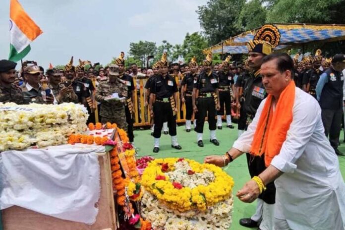 राजगढ़ जिले के पचोर नगर से टूटियाहेड़ी तक शहीद की अंतिम यात्रा में अपार जन सैलाब उमड़ा। ‘भारत माता की जय’ और ‘शहीद हरिओम नागर अमर रहें’ के नारों से गूंजते माहौल में पूरा क्षेत्र राष्ट्रभक्ति के रंग में रंग गया। जगह-जगह पुष्पवर्षा कर श्रद्धांजलि दी गई। महिलाएं, युवा, बुजुर्ग और बच्चों ने भावविभोर होकर नम आंखों से अंतिम दर्शन किए।