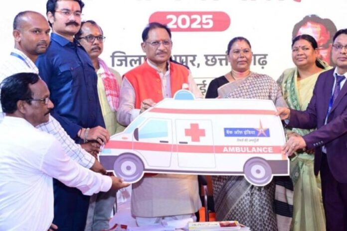 मुख्यमंत्री विष्णु देव साय ने आज जशपुर जिले के ग्राम बगिया स्थित कैम्प कार्यालय परिसर से अत्याधुनिक सुविधाओं से युक्त एम्बुलेंस को हरी झंडी दिखाकर रवाना किया। यह एम्बुलेंस बैंक ऑफ इंडिया द्वारा कॉर्पोरेट सामाजिक उत्तरदायित्व (CSR) निधि से प्रदत्त है, जिसमें बेसिक लाइफ सपोर्ट सिस्टम सहित अन्य उन्नत सुविधाएँ उपलब्ध कराई गई हैं।