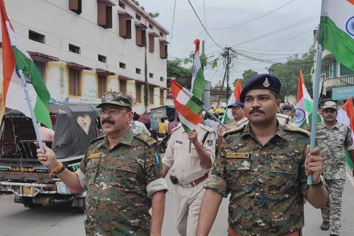 उक्त तिरंगा रैली में रक्षित निरीक्षक श्री विशाल मालवीय पुलिस अधिकारी/ कर्मचारी, स्कूली छात्र-छात्राएं, खेल विभाग के कर्मचारी  शामिल हुए।