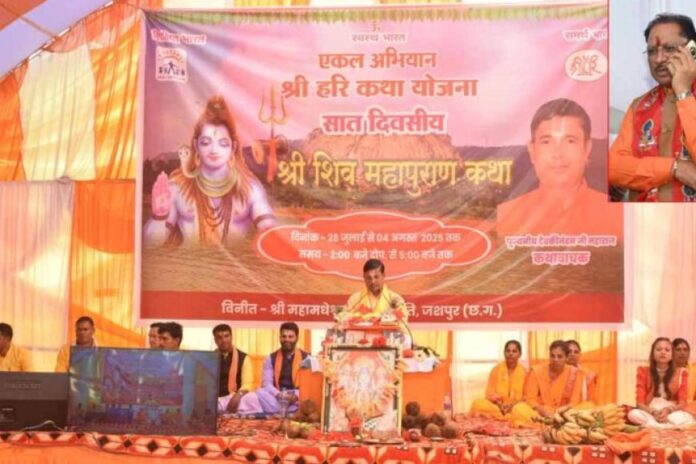 मुख्यमंत्री विष्णु देव साय ने पवित्र श्रावण मास के चौथे सोमवार के शुभ अवसर पर रायपुर स्थित मुख्यमंत्री निवास कार्यालय से जशपुर जिले के कुनकुरी विकासखंड अंतर्गत मयाली में विश्व के सबसे बड़े प्राकृतिक शिवलिंग मधेश्वर पहाड़ के समीप आयोजित दिव्य शिव महापुराण कथा के समापन समारोह को ऑनलाइन माध्यम से संबोधित किया।