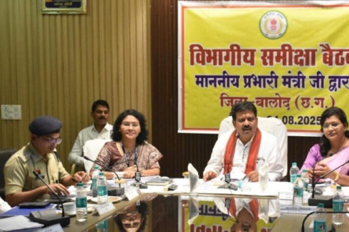 उपमुख्यमंत्री एवं बालोद जिले के प्रभारी मंत्री विजय शर्मा ने आज सयुक्त जिला कार्यालय सभाकक्ष में जिला स्तरीय अधिकारियों की समीक्षा बैठक लेकर जिले में शासकीय योजनाओं के क्रियान्वयन की स्थिति की विस्तृत समीक्षा की। उन्होंने अधिकारियों को पूरी प्रतिबद्धता के साथ कार्य करते हुए निर्धारित समयावधि में शासकीय योजनाओं का समुचित क्रियान्वयन सुनिश्चित करने के निर्देश दिए। शर्मा ने जिले के सभी अधिकारी-कर्मचारियों को पूरी निष्ठा एवं ईमानदारी के साथ कार्य करते हुए बालोद जिले को प्रत्येक दृष्टि से उत्कृष्ट, अग्रणी एवं आदर्श जिला बनाने में अपनी अमूल्य सहभागिता सुनिश्चित करने को कहा। शर्मा ने कहा कि प्रत्येक शासकीय सेवक को शासकीय सेवा में चयनित होने के पश्चात् जनसेवा करने का भी पुनीत अवसर प्राप्त होता है।
