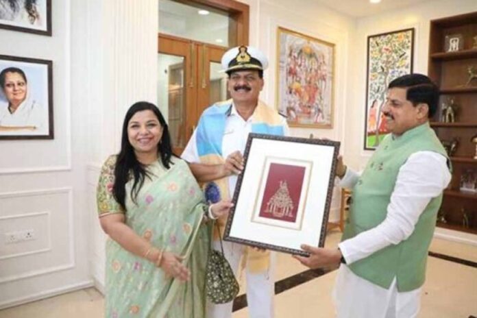 मुख्यमंत्री डॉ. यादव ने श्री त्रिपाठी को अंगवस्त्र ओढ़ाकर बाबा महाकाल मंदिर का छायाचित्र भेंट किया। एडमिरल श्री त्रिपाठी ने मुख्यमंत्री डॉ. यादव को लाइट हाउस की प्रतिकृति भेंट की।