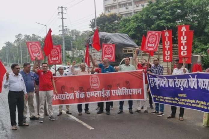 केंद्र सरकार की मजदूर और किसान विरोधी नीतियों, सार्वजनिक संस्थानों के निजीकरण और कॉरपोरेट लूट के खिलाफ आज राजधानी भोपाल में ट्रेड यूनियनों और किसान संगठनों ने संयुक्त रूप से जोरदार प्रदर्शन किया। यह विरोध केंद्रीय श्रमिक संगठनों और संयुक्त किसान मोर्चा के राष्ट्रव्यापी विरोध दिवस के आह्वान पर आयोजित हुआ।