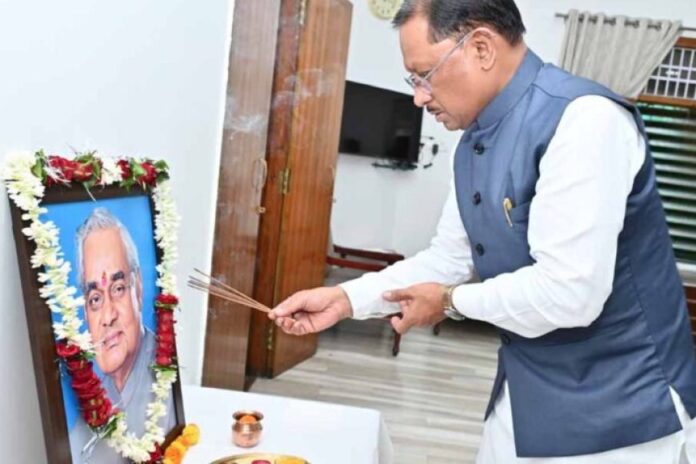 साय ने कहा कि वे ऐसे राजनेता थे जिन्हें दलगत राजनीति से ऊपर उठकर सभी का स्नेह प्राप्त हुआ। अटल जी माँ भारती की यश और प्रतिष्ठा के लिए आजीवन समर्पित रहे। मुख्यमंत्री ने कहा कि स्वर्गीय अटल जी के साथ उनकी अनेक स्मृतियाँ जुड़ी हुई हैं, जो उन्हें निरंतर प्रेरित करती हैं। उन्होंने कहा कि अटल जी युगपुरुष थे, जिन्होंने सुशासन का मंत्र दिया और आज हम उसी पथ पर आगे बढ़ते हुए छत्तीसगढ़ का विकास सुनिश्चित कर रहे हैं। इसके साथ ही हम यह पूरा वर्ष अटल निर्माण वर्ष के रूप में मना रहे हैं और इस संबंध में वर्षभर अनेक कार्यक्रम आयोजित किए जा रहे हैं।