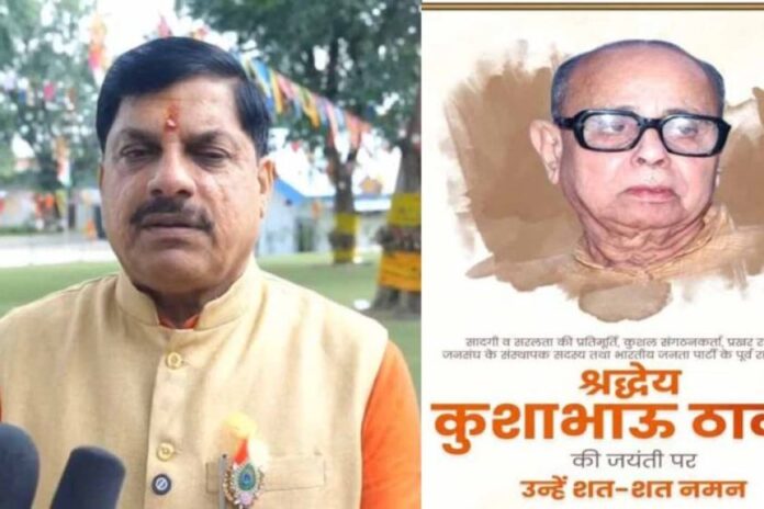 मध्यप्रदेश की राजधानी भोपाल में आज भारतीय जनता पार्टी (बीजेपी) के पितृ पुरुष कुशाभाऊ ठाकरे की जयंती मनाई गई। मुख्यमंत्री डॉ मोहन यादव कुशाभाऊ ठाकरे कन्वेंशन सेंटर में पुष्पांजलि अर्पित की। बीजेपी प्रदेश अध्यक्ष हेमंत खंडेलवाल के साथ पार्टी कार्यकर्ताओं ने पुष्पांजलि अर्पित कर उका भावभीना स्मरण किया।