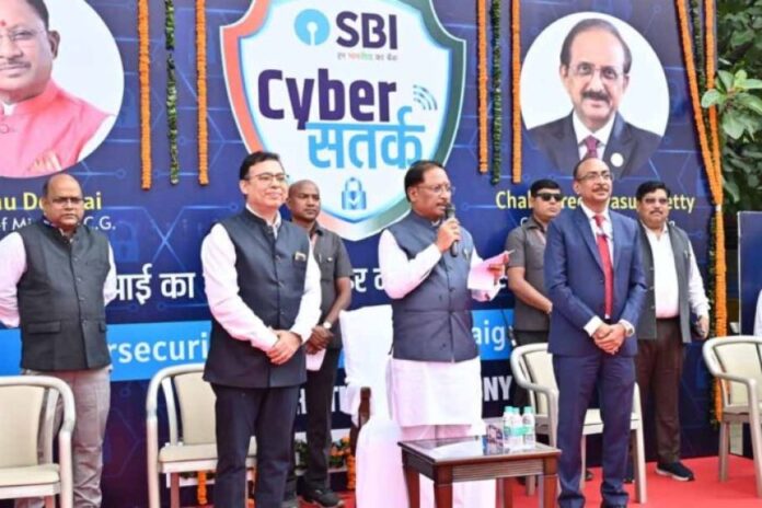राजधानी स्थित मुख्यमंत्री निवास में आज शनिवार को आयोजित फ्लैगिंग ऑफ कार्यक्रम में मुख्यमंत्री विष्णुदेव साय ने SBI साइबर सतर्कता रथ को हरी झंडी दिखाकर रवाना किया. यह कार्यक्रम स्टेट बैंक ऑफ इंडिया (SBI) द्वारा आयोजित किया गया. मुख्यमंत्री साय ने कार्यक्रम को संबोधित करते हुए कहा कि “आज SBI और छत्तीसगढ़ सरकार की ओर से साइबर सतर्कता रथ का फ्लैग ऑफ किया जा रहा है. छत्तीसगढ़ लगातार विकास की ओर बढ़ रहा है और आज एक और नई कड़ी जुड़ रही है.”
