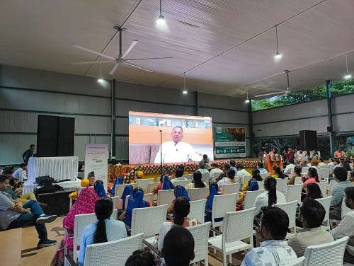 Chairman Emeritus, Padma Shri Rajinder Gupta addressing members through a video message during the Values Day celebrations at Budhni