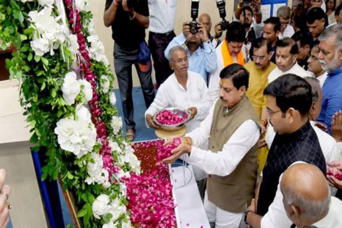मुख्यमंत्री डॉ. मोहन यादव शनिवार को ग्वालियर में स्व. प्रभात झा की श्रद्धांजलि सभा में शामिल हुए और श्रद्धा-सुमन अर्पित किए। उन्होंने स्व. प्रभात झा को याद करते हुए कहा कि वे छोटे से छोटे कार्यकर्ता की चिंता करते थे। स्व. झा ने सही मायने में अभिभावक की भांति स्नेह देकर अपनीकी भूमिका का निर्वहन किया। उनका सम्पूर्ण जीवन हम सबके लिए अनुकरणीय है। मुख्यमंत्री डॉ. यादव ने कहा कि विद्यार्थी परिषद के समय से उनके श्रीझा के साथ आत्मीय संबंध रहे। उनके विचार हम सबका मार्गदर्शन करते रहेंगे।