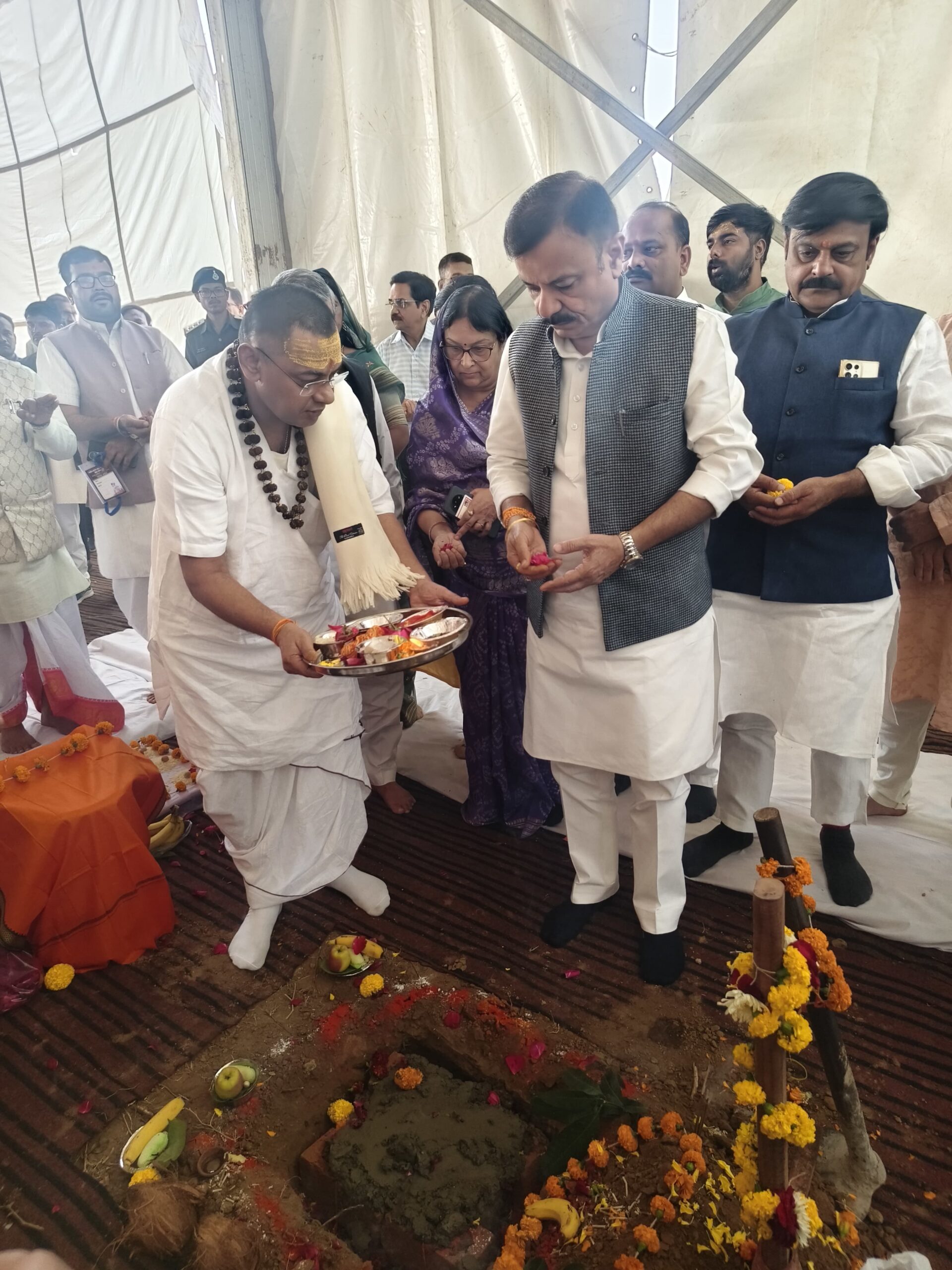 कार्यक्रम मे सर्वप्रथम अतिथियों की उपस्थिति मे वैदिक मंत्रोच्चार से भूमिपूजन किया गया।
