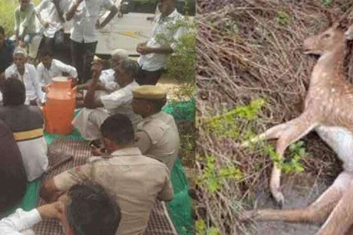 बाड़मेर के चौहटन थाना इलाके में कल रात 10 से ज्यादा हिरणों के शिकार की घटना के बाद बड़ी संख्या में ग्रामीण मौके पर इकट्ठा हो गए और शिकारियों की गिरफ्तारी के लिए धरने पर बैठ गए। हिरणों के शिकार पर गुस्साए ग्रामीणों ने प्रशासन से शिकारियों को तुरंत गिरफ्तार किए जाने की मांग की है। जानकारी के अनुसार कल रात शेरपुरा गांव के करीब सुनसान जगह पर कल रात ग्रामीणों को शिकारियों की हलचल दिखाई दी।