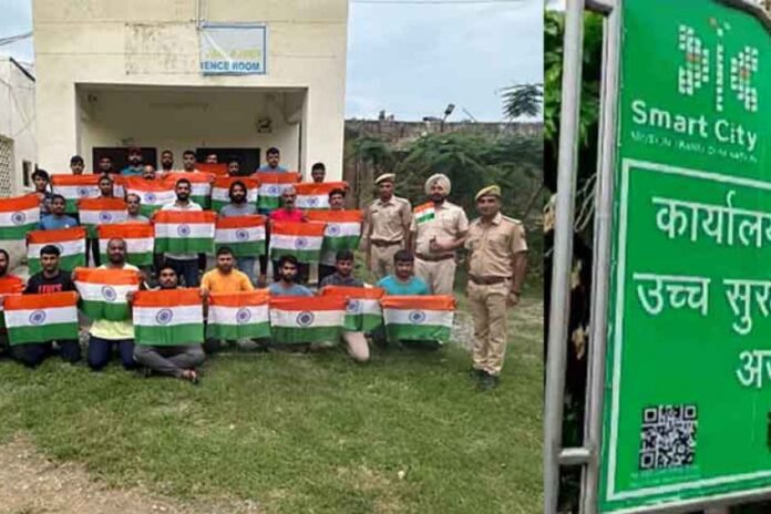 जिले में घूघरा स्थित राज्य की एकमात्र हाई सिक्यूरिटी जेल में बंद हार्डकोर, गैंगवार तथा अतिसुरक्षा वाले कैदियों के लिए कल शाम हर घर तिरंगा अभियान के तहत विशेष कार्यक्रम आयोजित किया गया, जिसमें जेल के कैदियों ने उत्साहपूर्वक भाग लिया। स्वतंत्रता दिवस के मौके पर हर घर तिरंगा अभियान के तहत घूघरा की हाई सिक्यूरिटी जेल में आयोजित कार्यक्रम में हार्डकोर कैदियों ने देश सेवा और समर्पण की शपथ ली।
