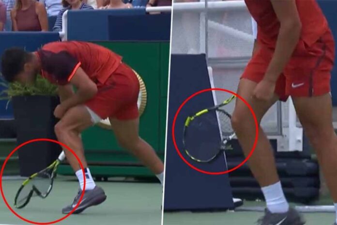 चार बार के ग्रैंड स्लैम विजेता कार्लोस अल्कराज ने सिनसिनाटी ओपन टेनिस टूर्नामेंट में गेल मोनफिल्स से हारने के बाद अपना गुस्सा रैकेट पर निकाला और उसे कई बार नीचे पटककर तोड़ डाला। मोनफिल्स ने तीन सेट तक चले इस कड़े मुकाबले में 4-6, 7-6 (7-5), 6-4 से जीत दर्ज की। बारिश के कारण यह मैच गुरुवार को पूरा नहीं हो पाया था।