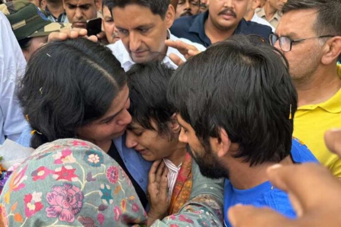 पेरिस ओलंपिक में इतिहास रचने के बाद पहलवान विनेश फोगाट शनिवार को भारत लौट आईं हैं। मेडल का जीतने का सपना टूटने के बाद बहादुर बेटी आज देश की धरती पर कदम रखा। विनेश फोगाट दिल्ली के इंदिरा गांधी एयरपोर्ट पर उतरीं।