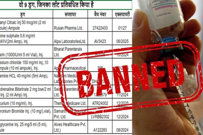 इंदौर MGM मेडिकल कॉलेज की रिपोर्ट पर 9 ड्रग्स के बड़े लॉट को मध्य प्रदेश में प्रतिबंधित कर दिया है। अब ये लॉट मध्य प्रदेश के किसी भी अस्पताल में उपयोग नहीं किया जा सकता है। प्रतिबंधित किए गए सभी ड्रग्स इंजेक्शन फॉर्म में थे और ये कुछ लाइफ सेविंग ड्रग्स, एंटीबायोटिक्स और मल्टी विटामिन ड्रग्स के इंजेक्शन हैं। MP पब्लिक हेल्थ सर्विसेज कॉर्पोरेशन लि. (MPPHSCL) ने प्रतिबंध लगाकर सभी जिलों के डीन, सीएमएचओ, सुपरिनटैंडैंट सहित पत्र जारी कर दिया है।